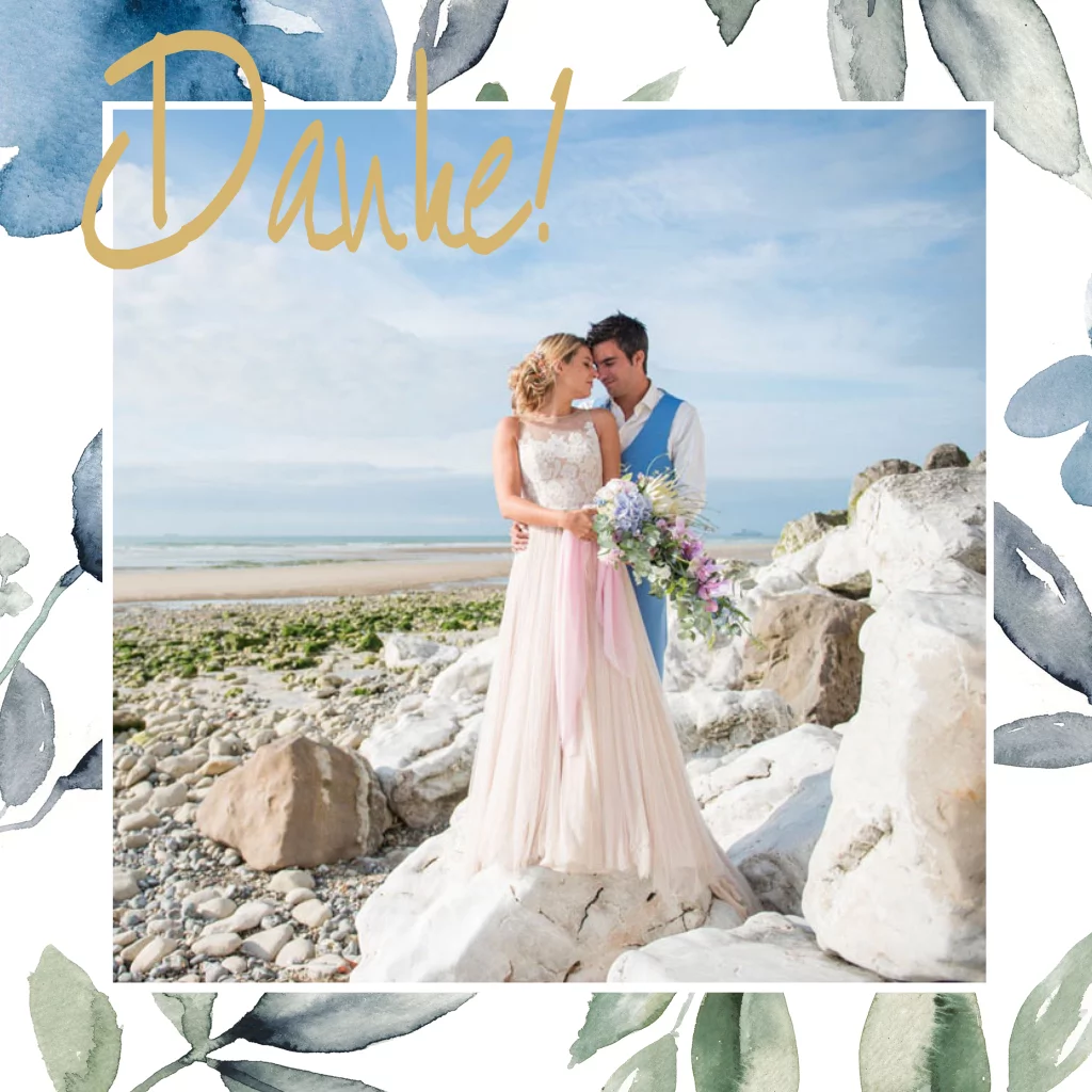 Dankeskarte mit Ihrem Bild und Blumen im Hintergrund