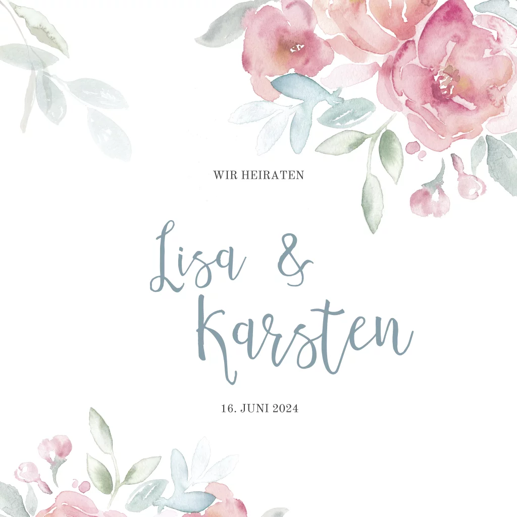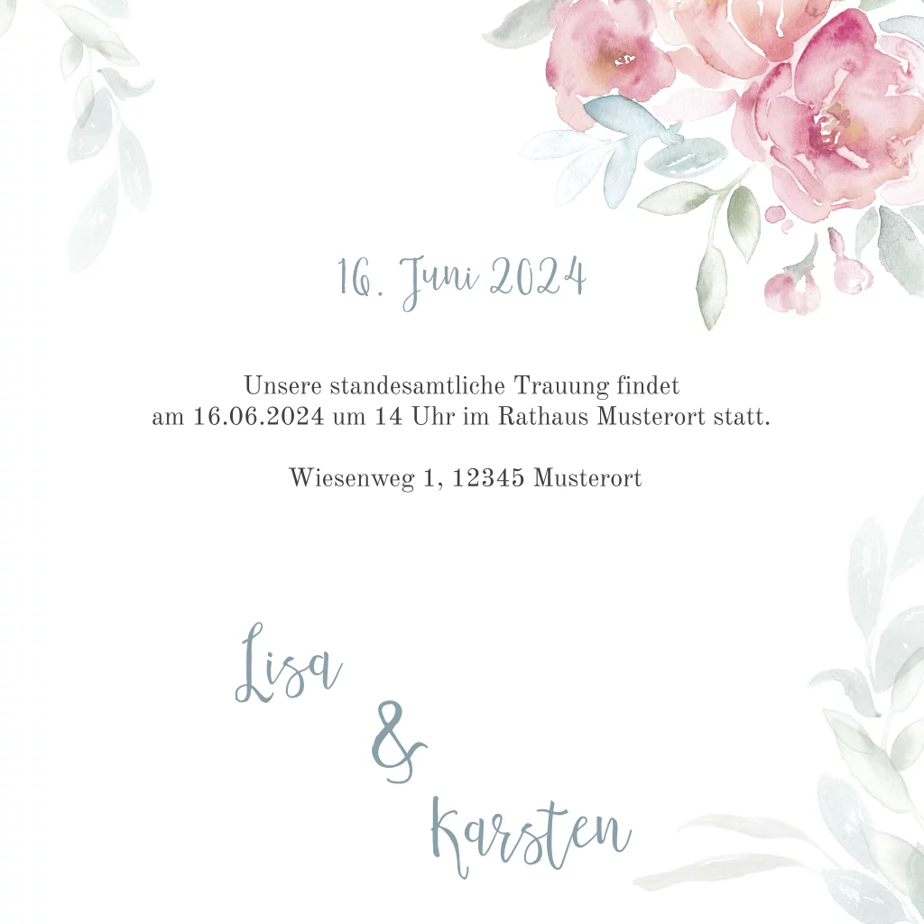 Hochzeitseinladung mit rosafarbenen Blüten