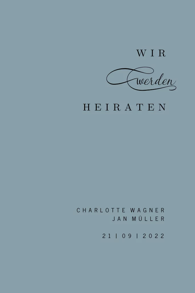 Hübsche und klare Hochzeitseinladung mit blauem Hintergrund