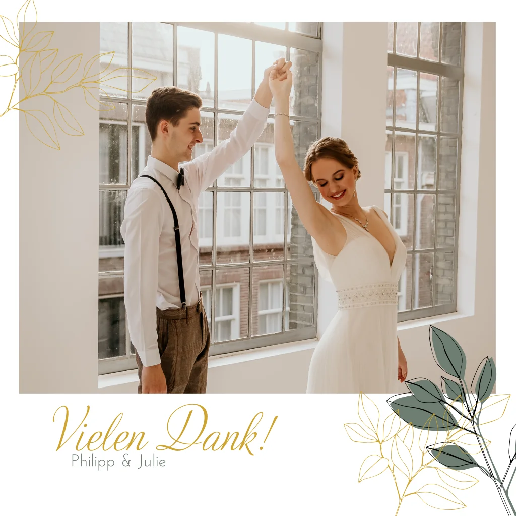 Dankeskarte mit grünen und goldenen Blättern: Golden Leaves"