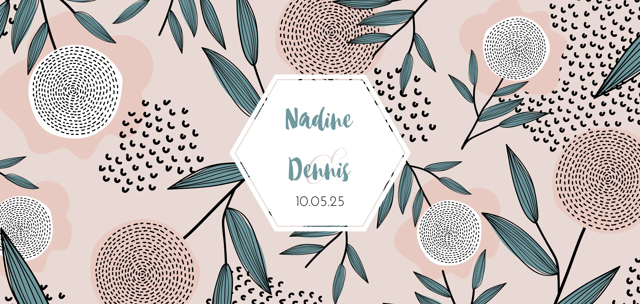 Hochzeitskarte mit verschiedenen abstrakten Blumen und Zweigen.
