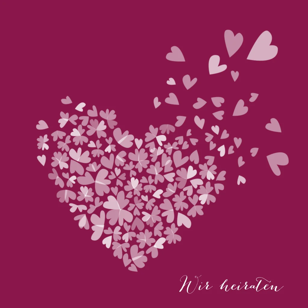 Hochzeitseinladung mit einem großen und vielen kleinen Herzen