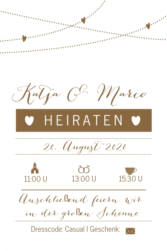 Vermitteln Sie Ihren Gästen mit der Hochzeiutseinladung "Rustikal" direkt das Motto, die Umgebung und die Stimmung Ihrer Hochzeit. Ihre Gäste können sich thematisch vorbereiten und sind gespannt auf die Umsetzung.