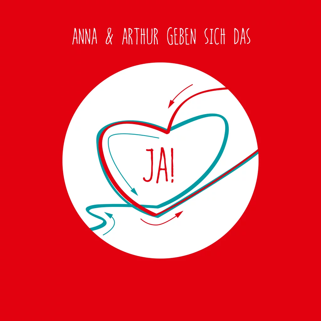 Einfachkarte - Quadratisch Wir geben uns das 'Ja' Wort in rot und türkis