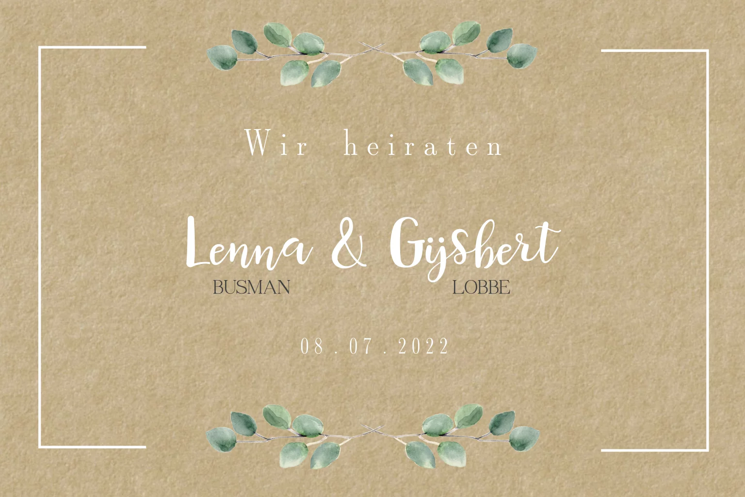 Hochzeitseinladung mit weißem Rahmen: "Eukalyptus"