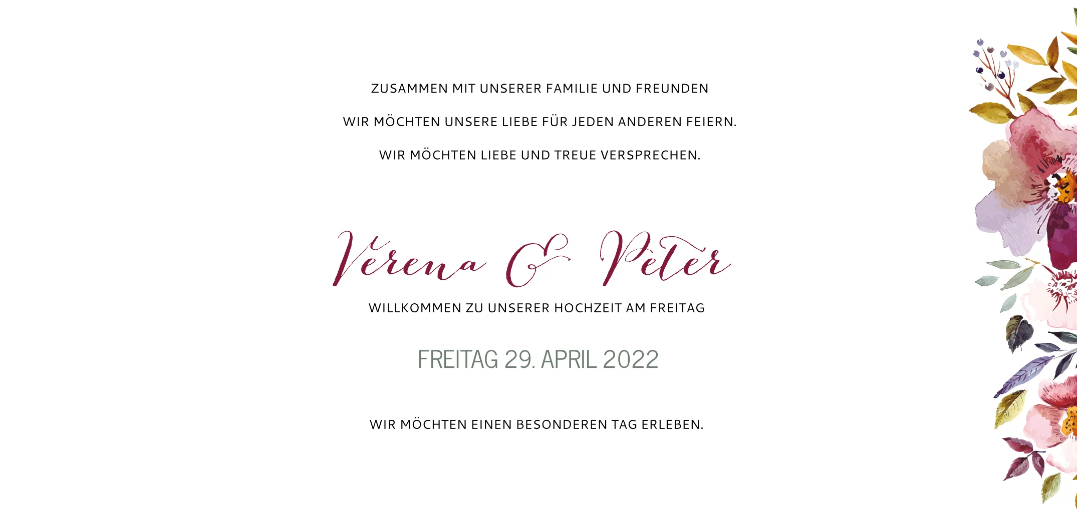 Hübsche Hochzeitseinladung mit bunten Blumen