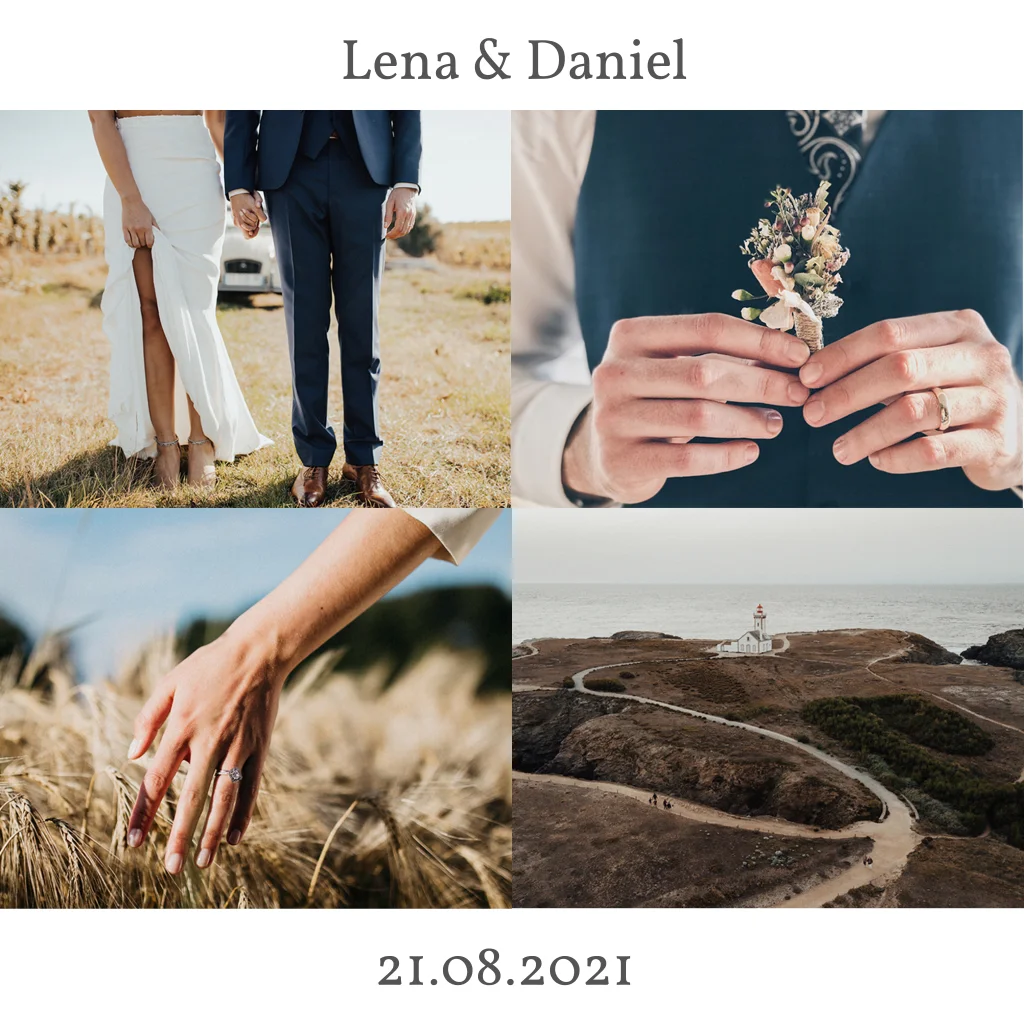 Hochzeitskarte mit individuellen Bildern. Die Karte kann individuelle angepasst werden.