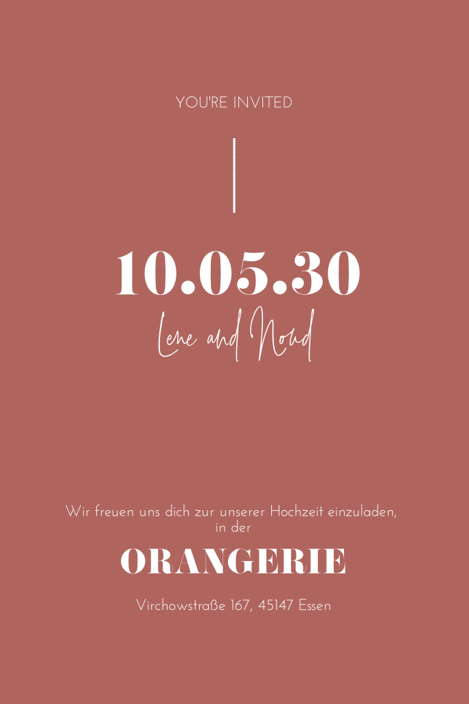 Hochzeitseinladung in Terracotta mit Foliendruck