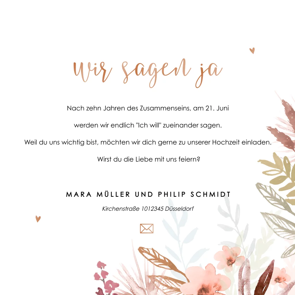 Hochzeitseinladung mit sommerlichen Blumen und Foliendruck