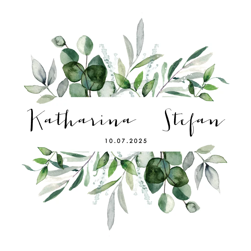Hochzeitseinladung mit grünen Blättern: "Eukalyptus"