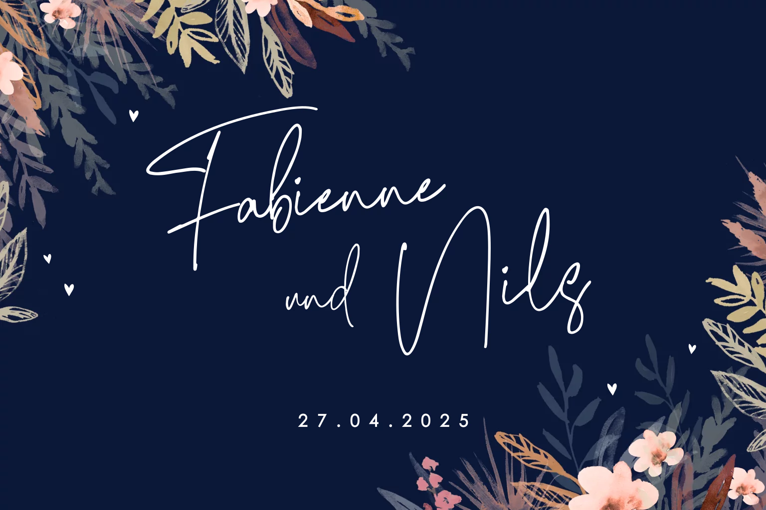 Hochzeitseinladung mit blauem Hintergrund und Pflanzen: "summernight"