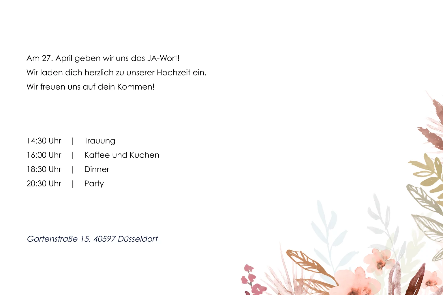 Hochzeitseinladung mit blauem Hintergrund und Pflanzen