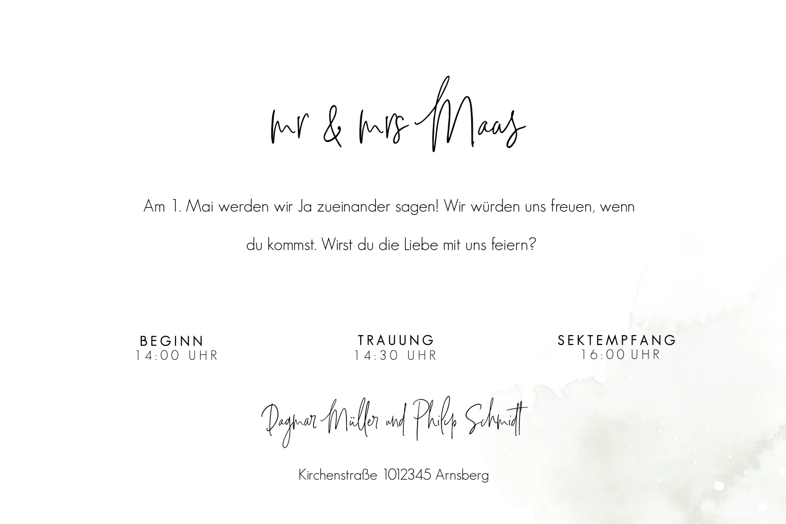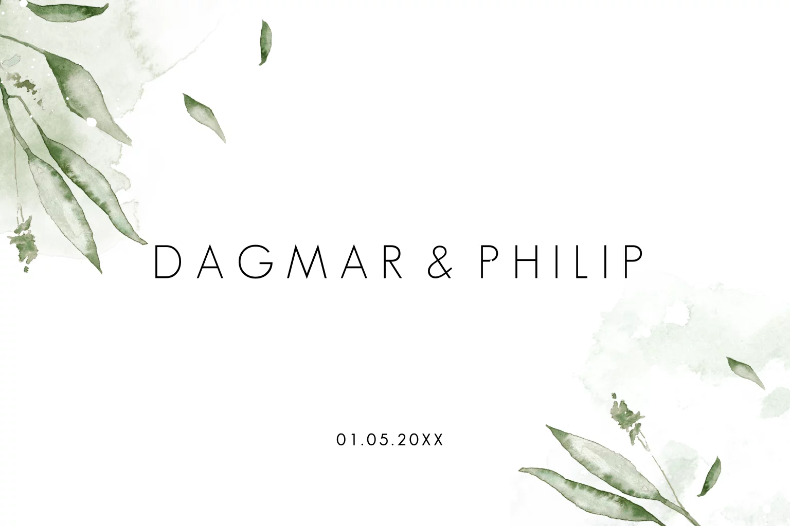 Hochzeitseinladung mit Foliendruck und Pflanzen