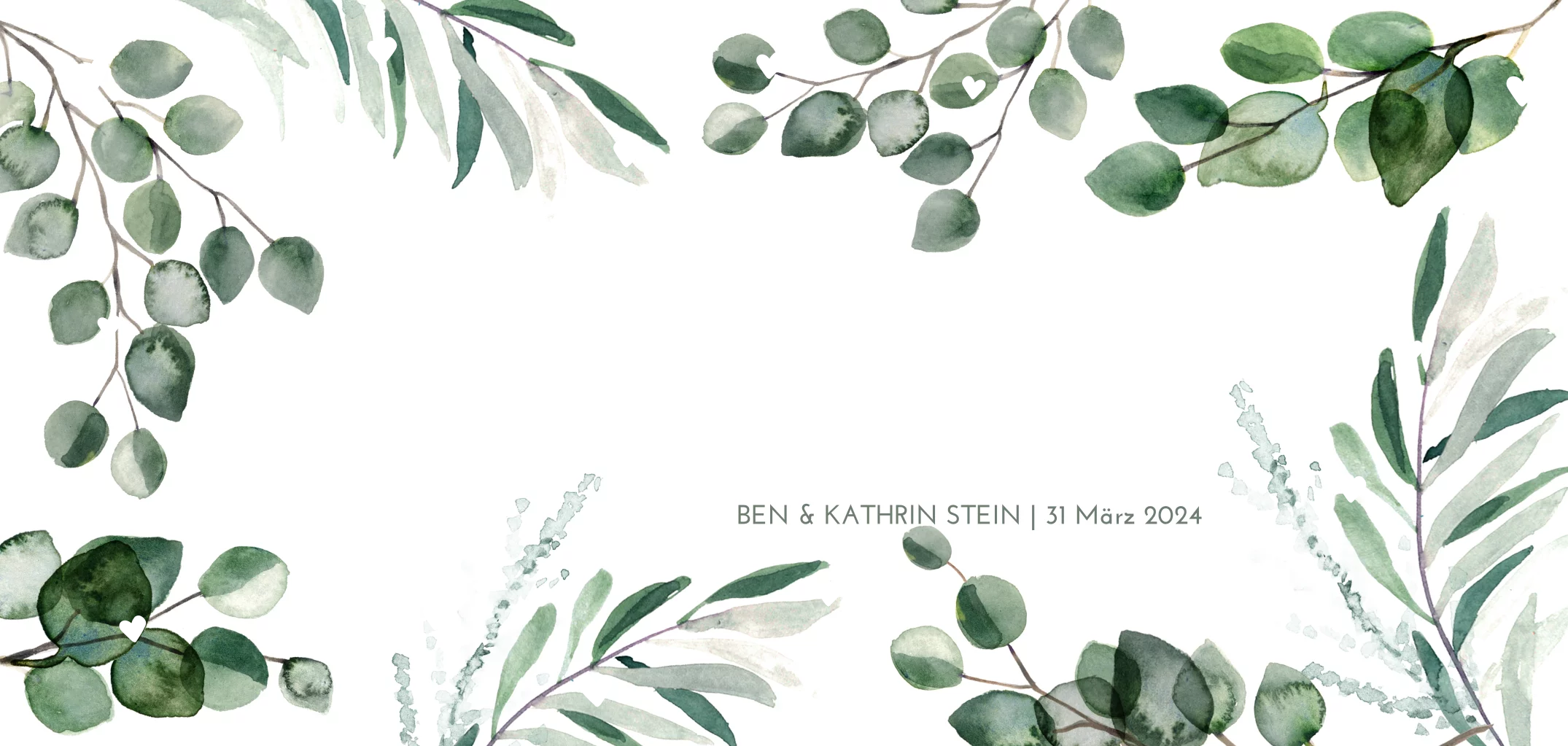 Dankeskarte mit grünen Zweigen und goldenen Herzen