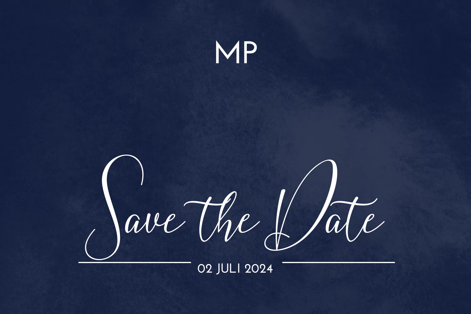 Elegante Save the Date Karte mit blauen Hintergrund und Foliendruck