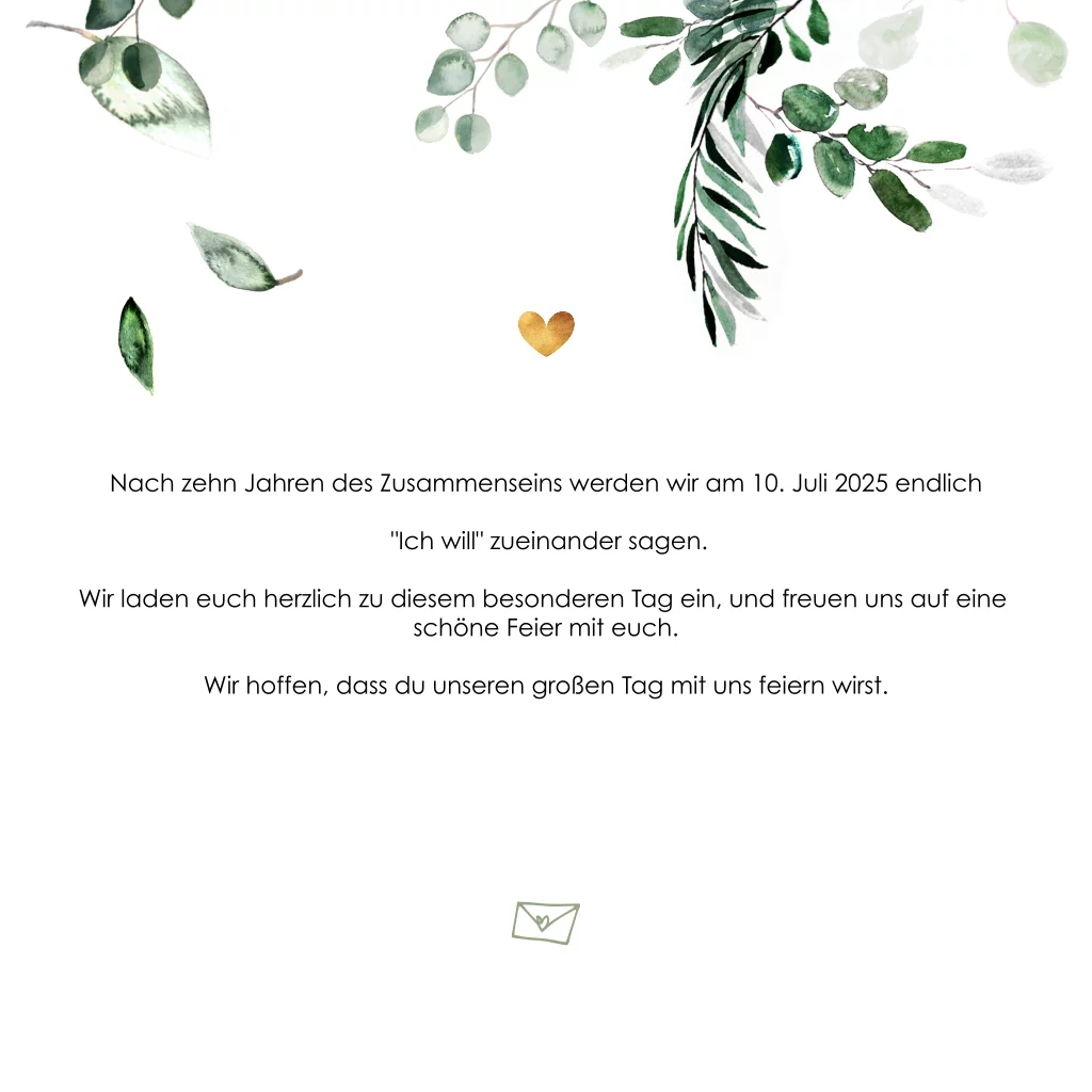 Hochzeitseinladung mit grünen Blättern: "Eukalyptus"
