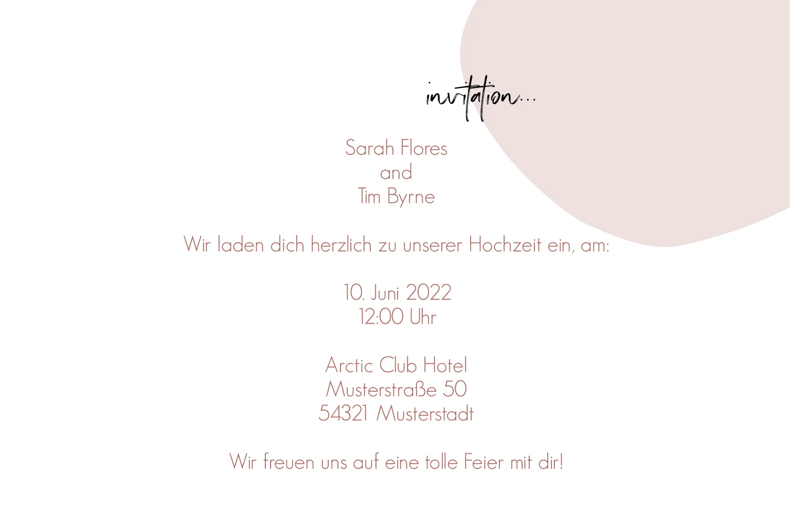 Hochzeitseinladung mit einer rosafarbenen Fläche