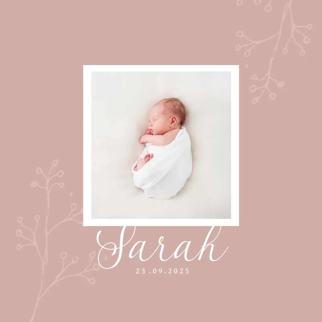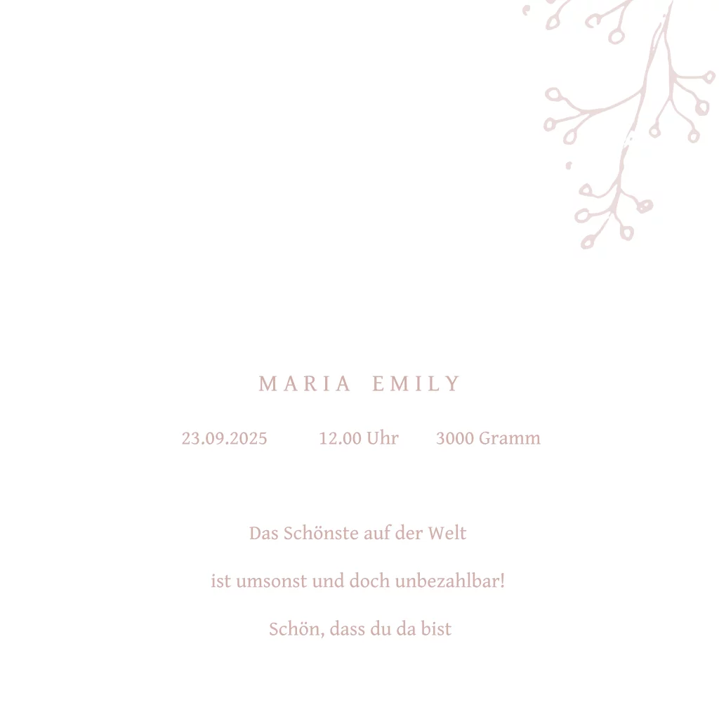 Dezente Zweige auf hübscher rosafarbener Geburtskarte