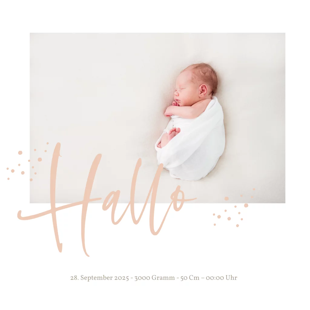 Klassische Geburtskarte mit Foto und Typografie