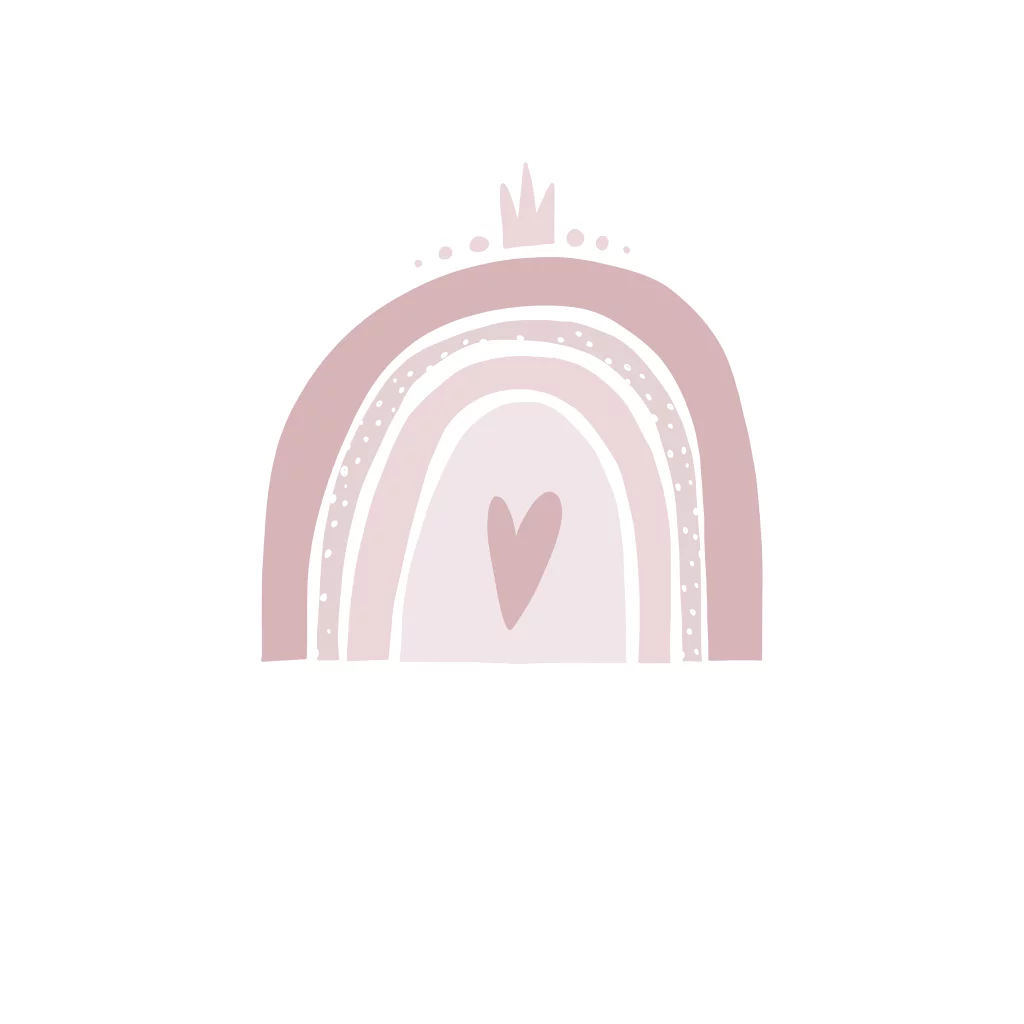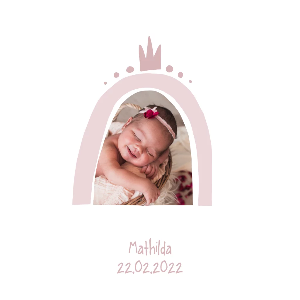 Hübsche Geburtskarte mit einem großen Regenbogen und Krone