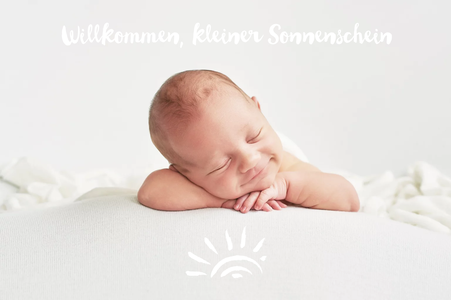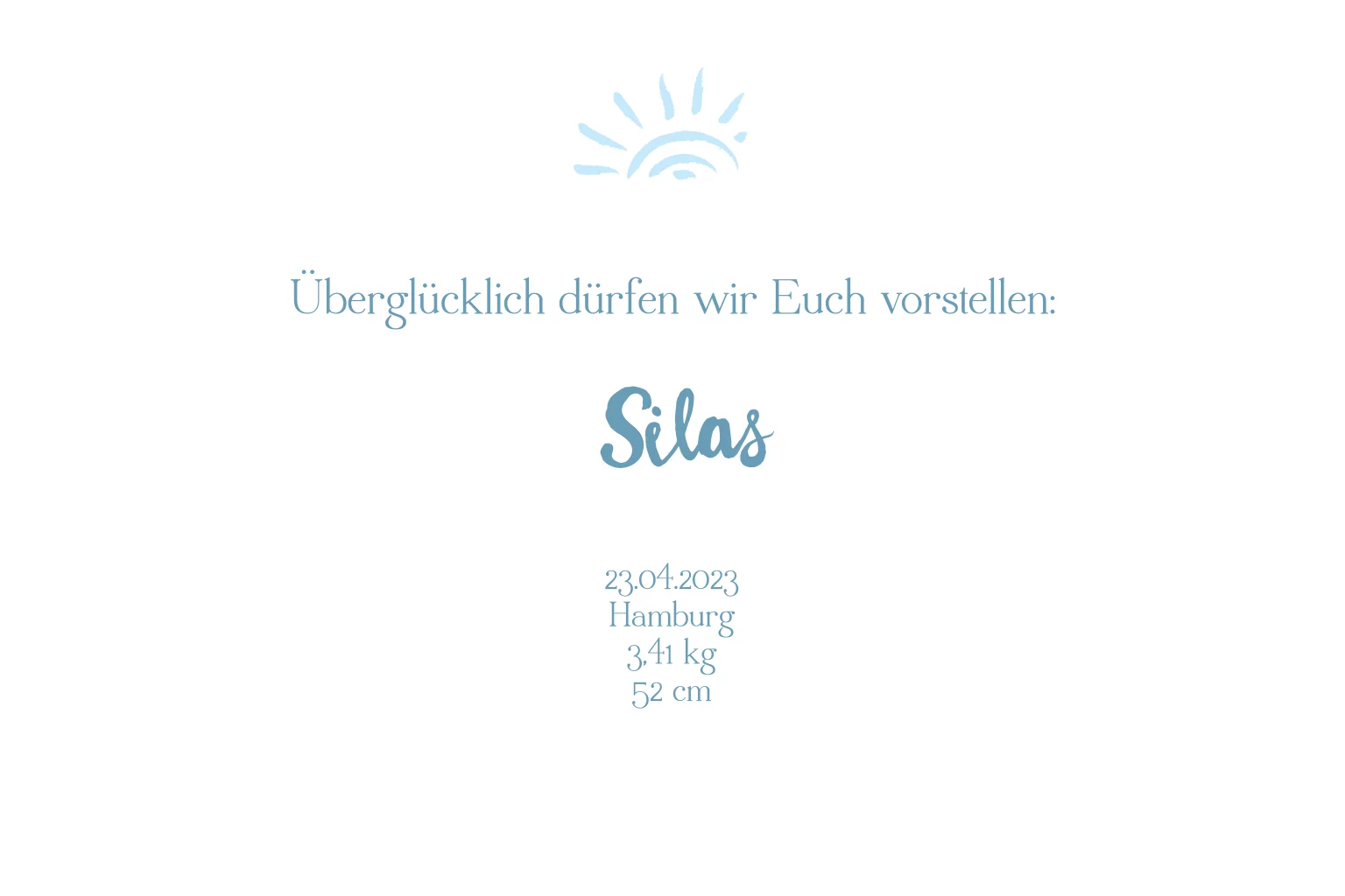 Stilvolle Geburtskarte mit großem Foto und Foliendruck