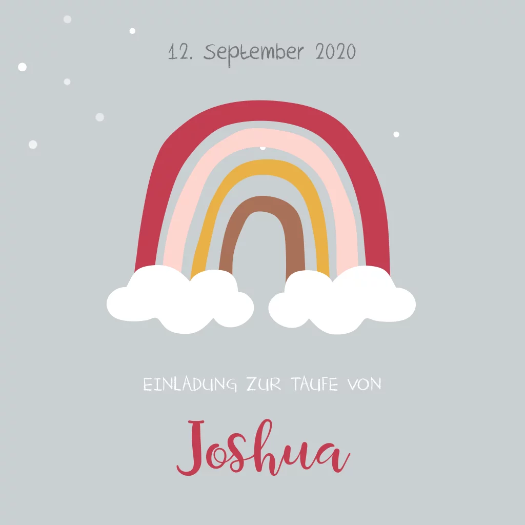 Quadratische Einladung zur Taufe mit angesagtem Regenbogen