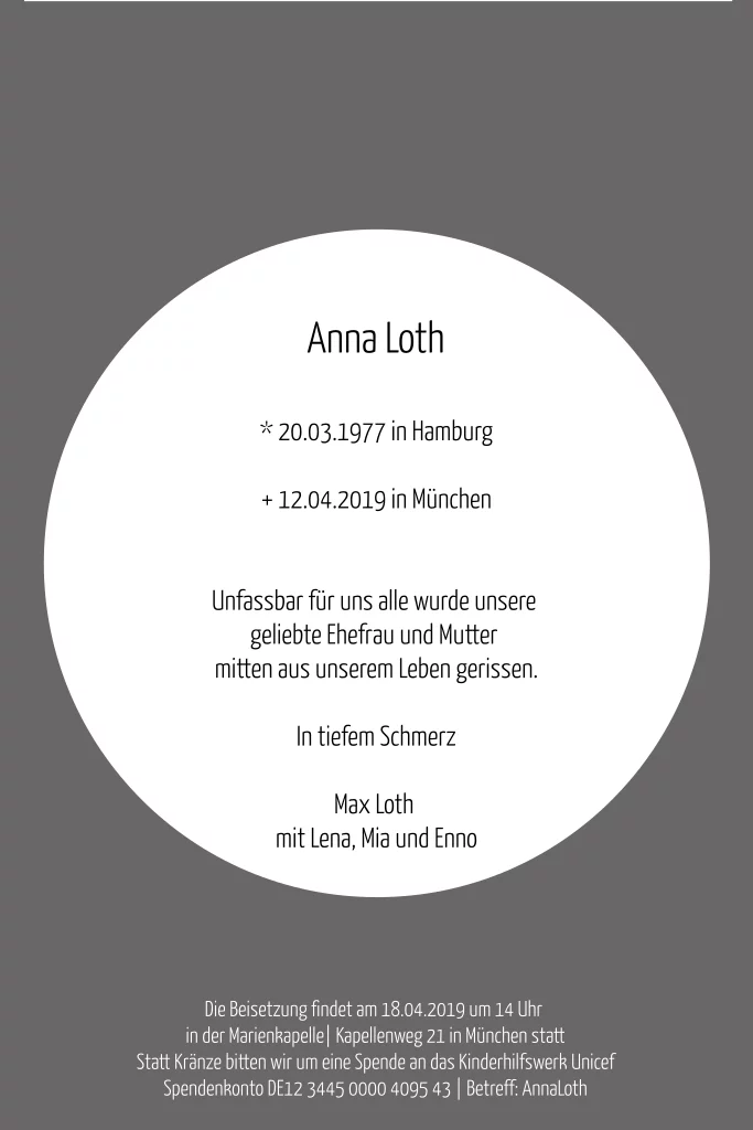 Klappkarte - Hoch Graue Trauerkarte mit Blumenkreis