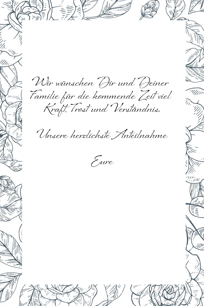 Klappkarte - Hoch Trauerkarte Floral in anthrazit und weiss
