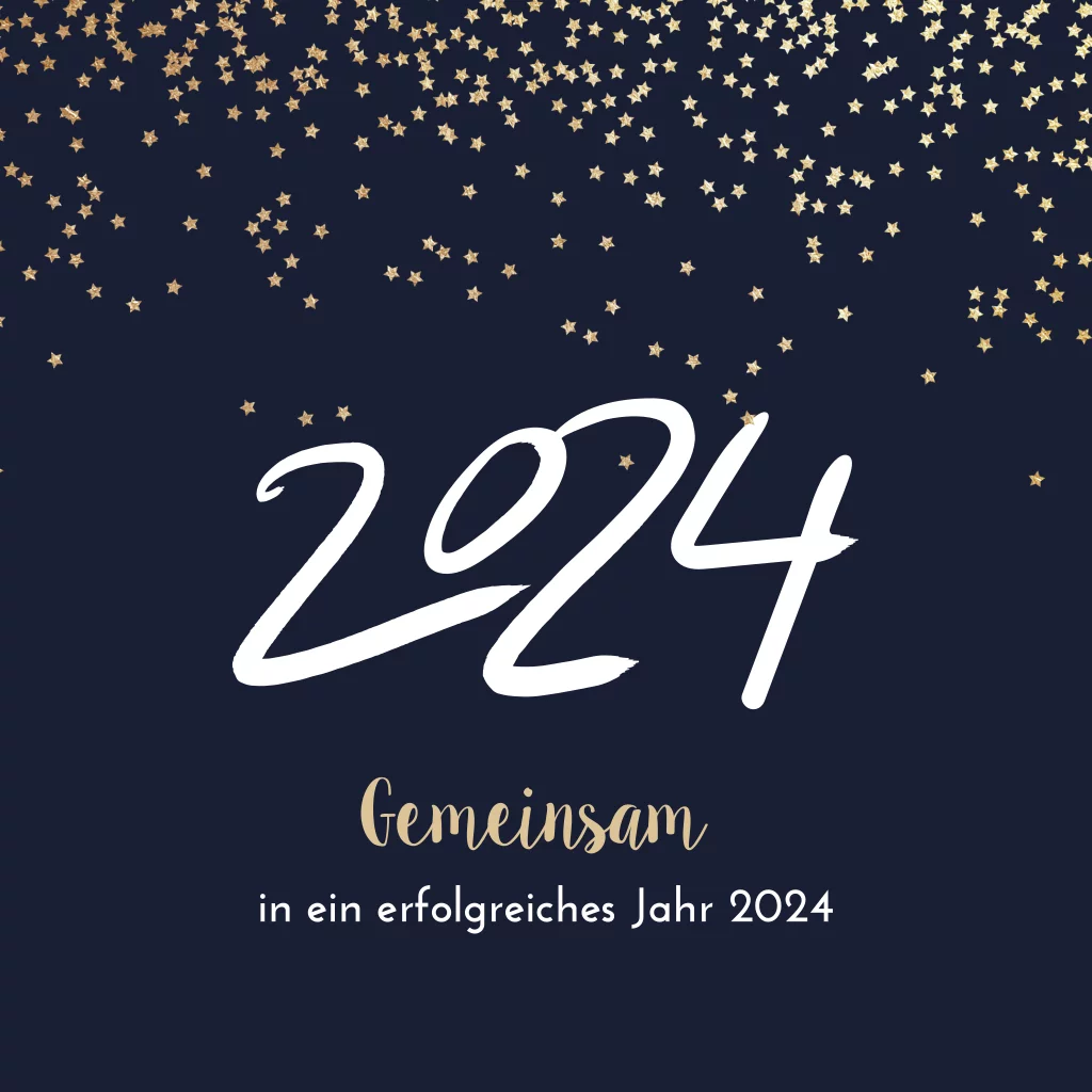 Neujahrskarte mit blauem Hintergrund, goldenen Punkten und Jahreszahl
