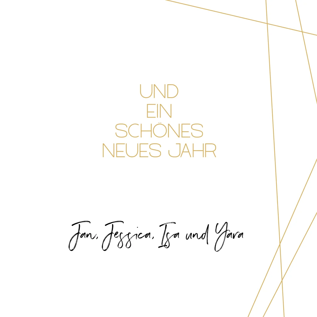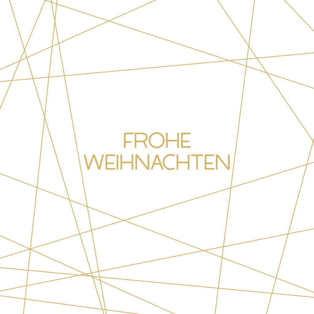 Elegante und klare Weihnachtskarte mit goldenen Linien auf weißem Hintergrund.