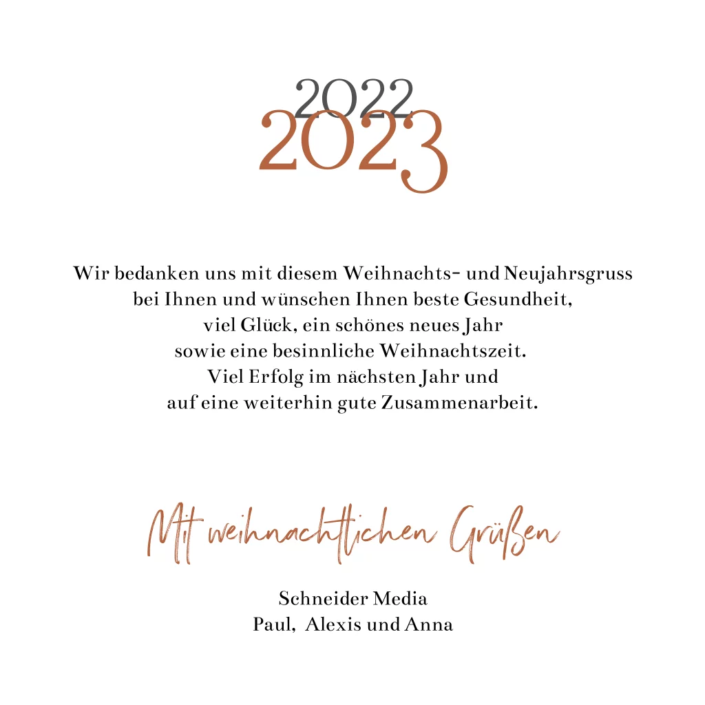 Geschäftliche Weihnachtskarte mit kleinen Quadraten und verschienden Texten und Motiven darin. Setzen Sie Bilder Ihres Unternehmens und Teams ein und senden Sie Ihren Geschäftspartnern frohe Weihnachtsgrüße.