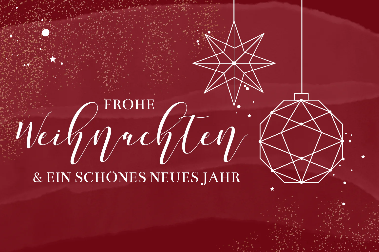 Hübsche rote Weihnachtskarte mit Stern und Weihnachtskugel