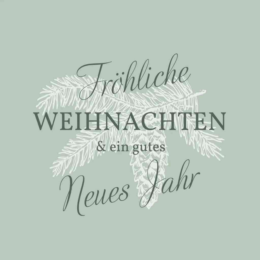 Hübsche Weihnachtskarte mit grünem Hintergrund und Tannenzweigen.