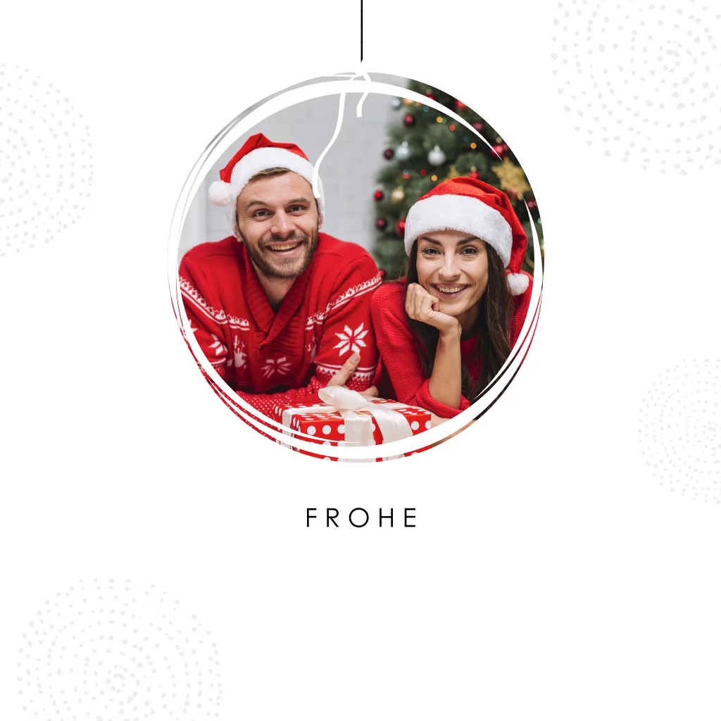 Schöne Weihnachtskarte mit einer Weihnachtskugel und Ihrem Bild darin