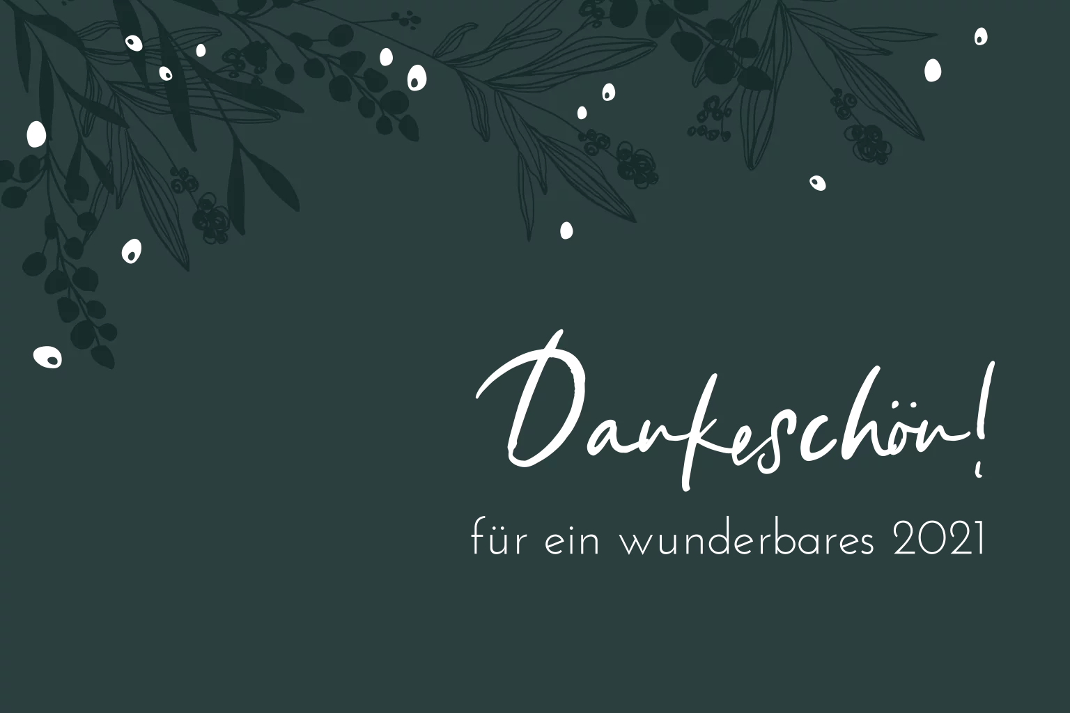 Einfachkarte - Quer Dunkelgraue Klappkarte mit goldener Schrift und grünen Zweigen