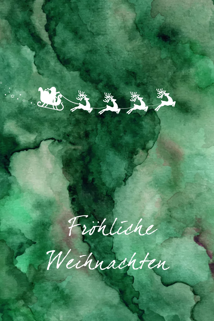 Weihnachtskarte mit grünem Hintergrund und Weihnachtsschlitten