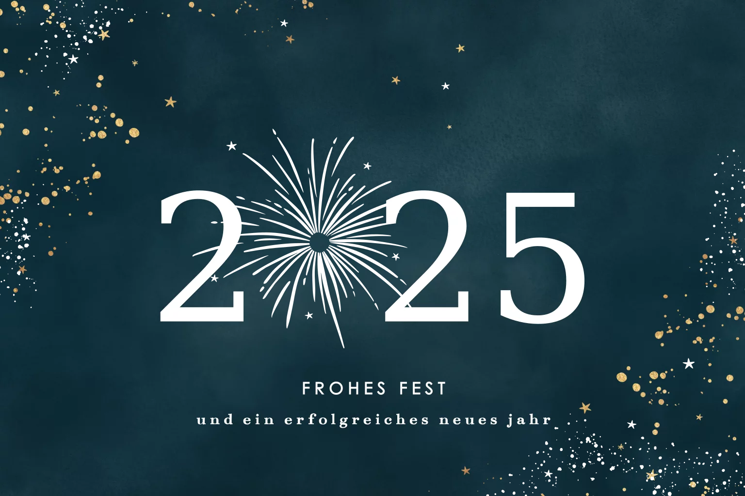 Neujahrskarte mit einem großen goldenen Feuerwerk in Folie